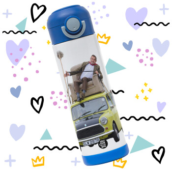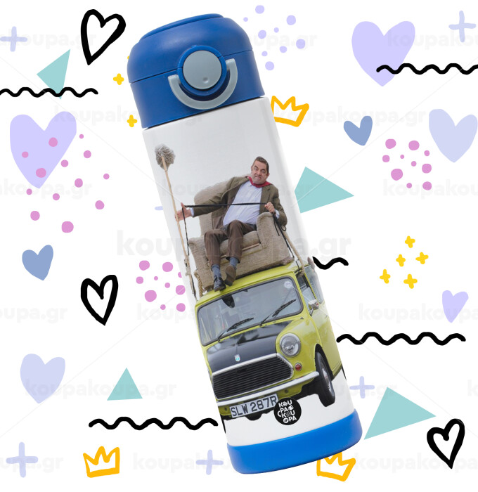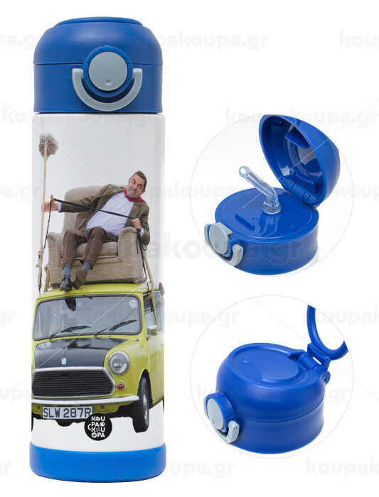 Mr. Bean mini 1000, Children's hot water bottle, stainless steel, with safety straw, BLUE (500ml)