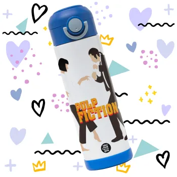 Pulp Fiction dancing, Children's hot water bottle, stainless steel, with safety straw, BLUE (500ml)