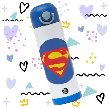 Superman, Children's hot water bottle, stainless steel, with safety straw, BLUE (500ml)