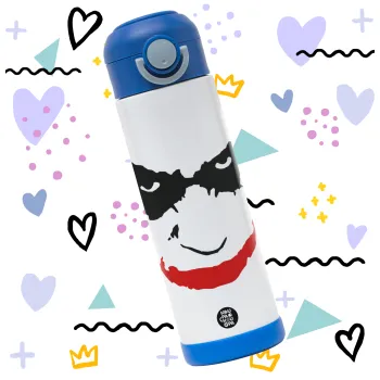 The joker smile, Children's hot water bottle, stainless steel, with safety straw, BLUE (500ml)