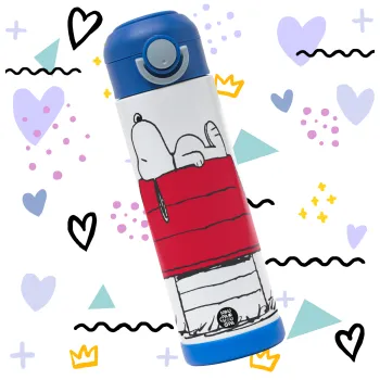 Το σπίτι του snoopy, Children's hot water bottle, stainless steel, with safety straw, BLUE (500ml)