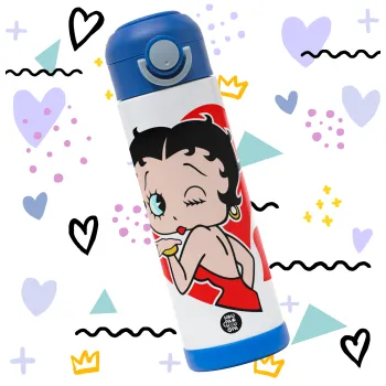 Betty Boop, Children's hot water bottle, stainless steel, with safety straw, BLUE (500ml)