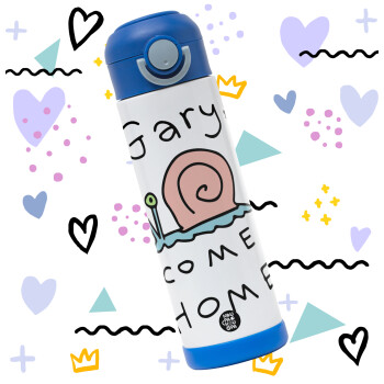 Gary come home, Children's hot water bottle, stainless steel, with safety straw, BLUE (500ml)