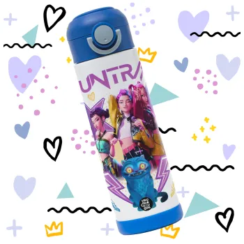 Huntrix K-pop series, Children's hot water bottle, stainless steel, with safety straw, BLUE (500ml)