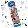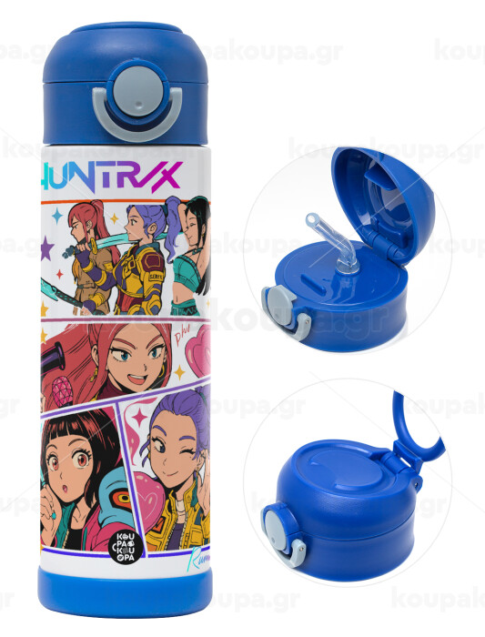 Huntrix Kpop Girls, Children's hot water bottle, stainless steel, with safety straw, BLUE (500ml)
