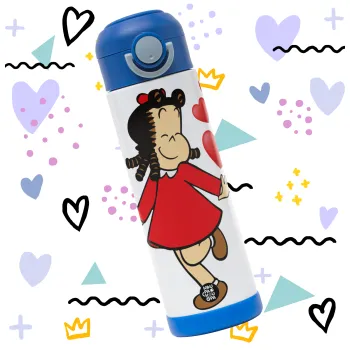 No more plastic bottles! We present the ultimate thermos bottle for your children! Made of stainless steel, our bottle holds 500ml of liquid and is ideal for school and outdoor activities. With the soft tip, our little friends can drink directly from the bottle without a straw. Its wide opening allows us to clean it easily for impeccable hygiene! Handle for easy transport, screw cap for safety and handle for comfortable holding. Also, our bottle is BPA FREE, keeps the drink cool and refreshing outside the fridge.