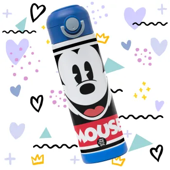 Mickey Mouse, Children's hot water bottle, stainless steel, with safety straw, BLUE (500ml)
