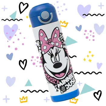 Minnie mouse, Children's hot water bottle, stainless steel, with safety straw, BLUE (500ml)