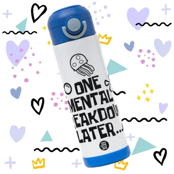 one mental breakdown later bob spongebob, Children's hot water bottle, stainless steel, with safety straw, BLUE (500ml)