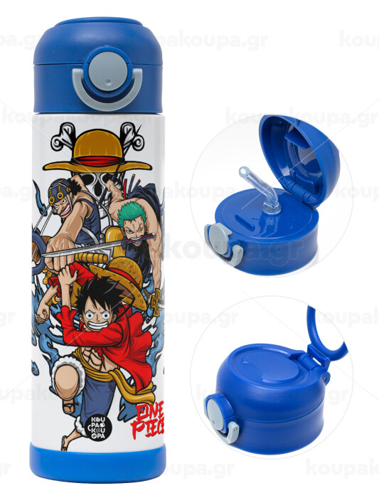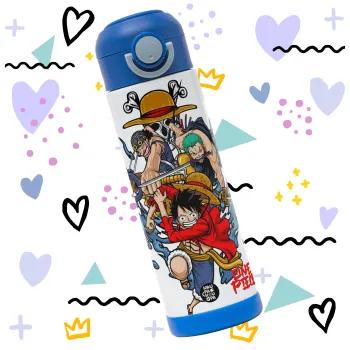 One Piece, Children's hot water bottle, stainless steel, with safety straw, BLUE (500ml)