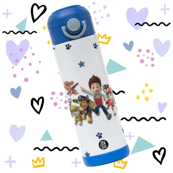 paw patrol, Children's hot water bottle, stainless steel, with safety straw, BLUE (500ml)