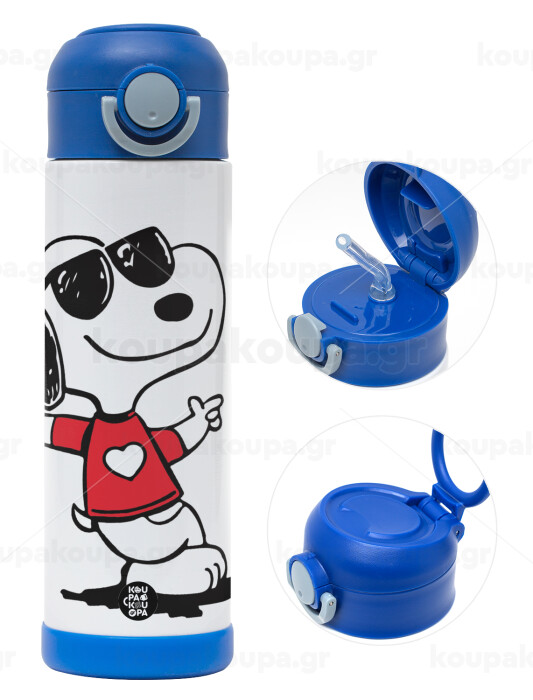 Snoopy καρδούλα, Children's hot water bottle, stainless steel, with safety straw, BLUE (500ml)