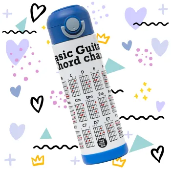 Guitar tabs, Children's hot water bottle, stainless steel, with safety straw, BLUE (500ml)