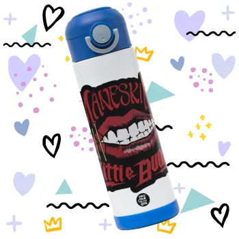 Maneskin lips, Children's hot water bottle, stainless steel, with safety straw, BLUE (500ml)