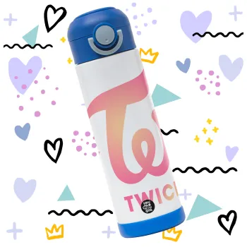 Twice, Children's hot water bottle, stainless steel, with safety straw, BLUE (500ml)
