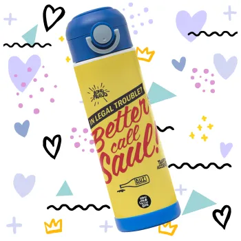 Better Call Saul, Children's hot water bottle, stainless steel, with safety straw, BLUE (500ml)