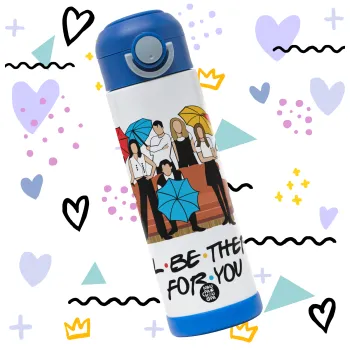 Friends cover, Children's hot water bottle, stainless steel, with safety straw, BLUE (500ml)