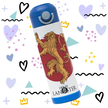 House Lannister GOT, Children's hot water bottle, stainless steel, with safety straw, BLUE (500ml)