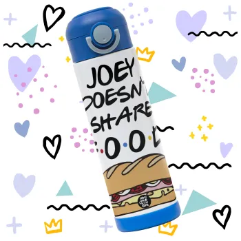 Joey Doesn't Share Food, Children's hot water bottle, stainless steel, with safety straw, BLUE (500ml)