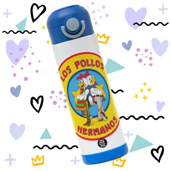 Los Pollos Hermanos, Children's hot water bottle, stainless steel, with safety straw, BLUE (500ml)