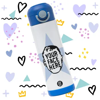 The office star CUSTOM, Children's hot water bottle, stainless steel, with safety straw, BLUE (500ml)