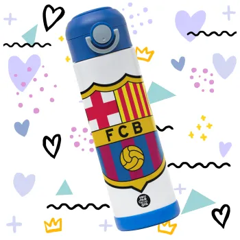 Barcelona FC, Children's hot water bottle, stainless steel, with safety straw, BLUE (500ml)