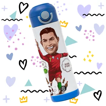 Cristiano Ronaldo, Children's hot water bottle, stainless steel, with safety straw, BLUE (500ml)