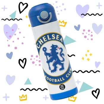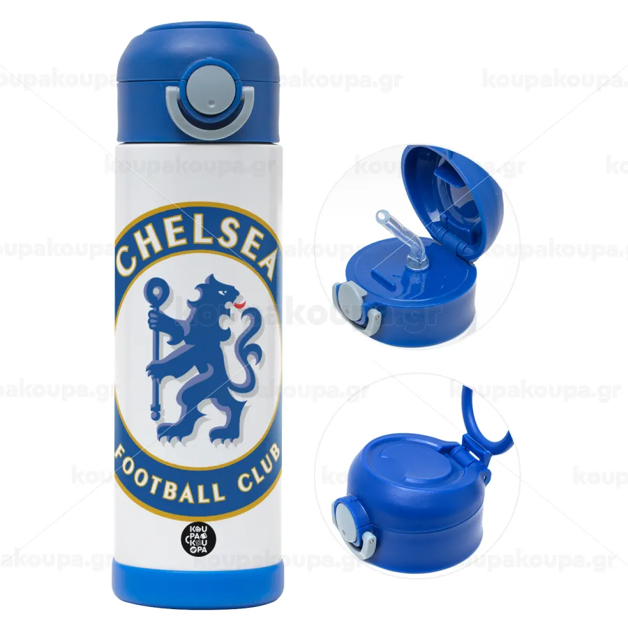 FC Chelsea, Children's hot water bottle, stainless steel, with safety straw, BLUE (500ml)