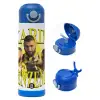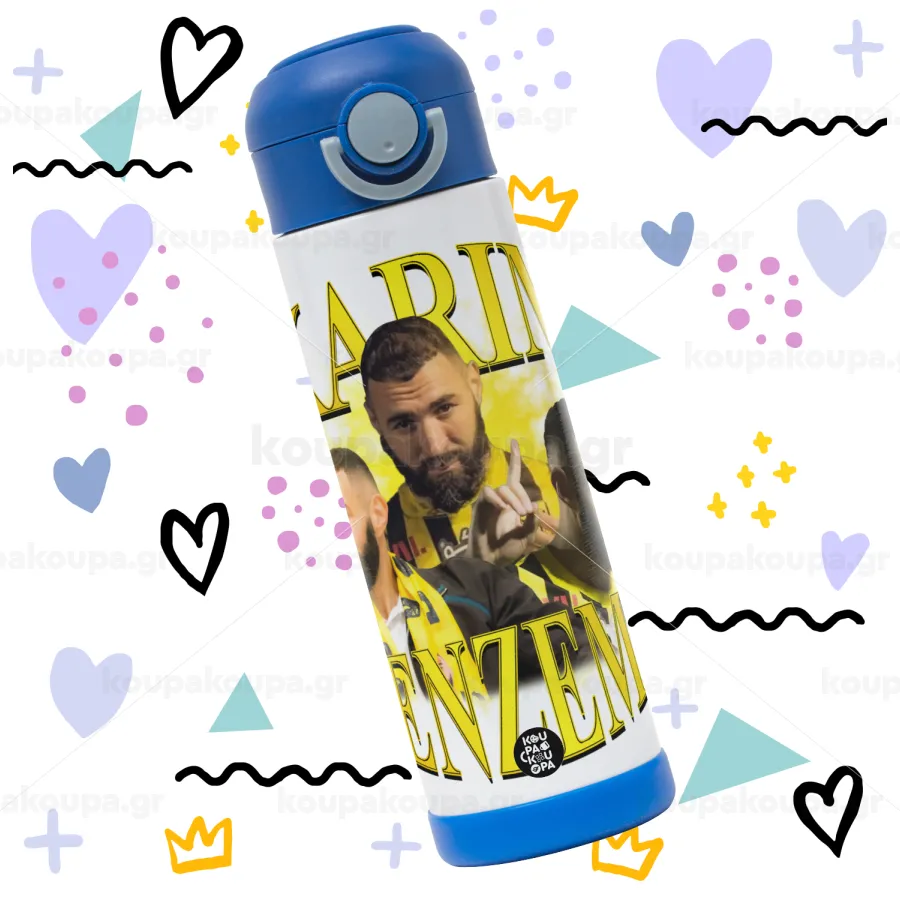 Karim Benzema, Children's hot water bottle, stainless steel, with safety straw, BLUE (500ml)