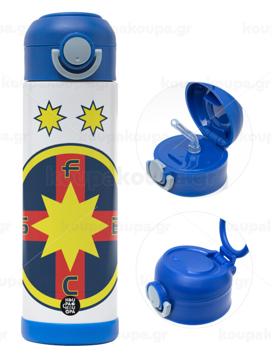 FC Steaua Bucuresti (FCSB), Children's hot water bottle, stainless steel, with safety straw, BLUE (500ml)
