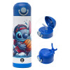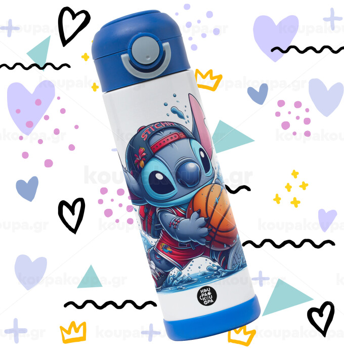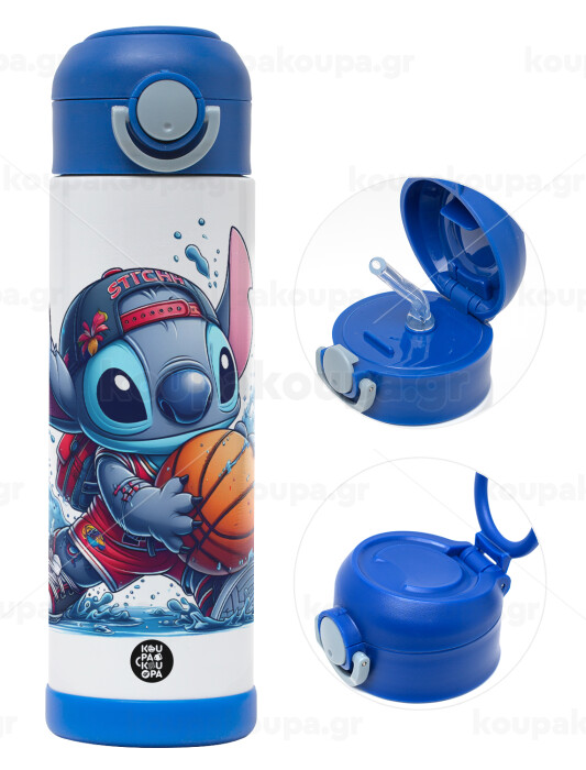 Stitch Basketball, Children's hot water bottle, stainless steel, with safety straw, BLUE (500ml)