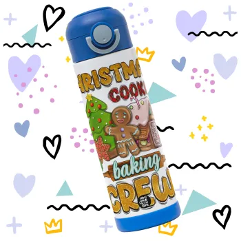 Christmas Cookie Baking Crew, Children's hot water bottle, stainless steel, with safety straw, BLUE (500ml)