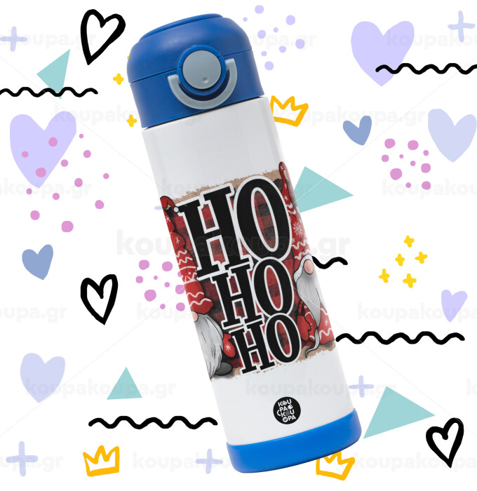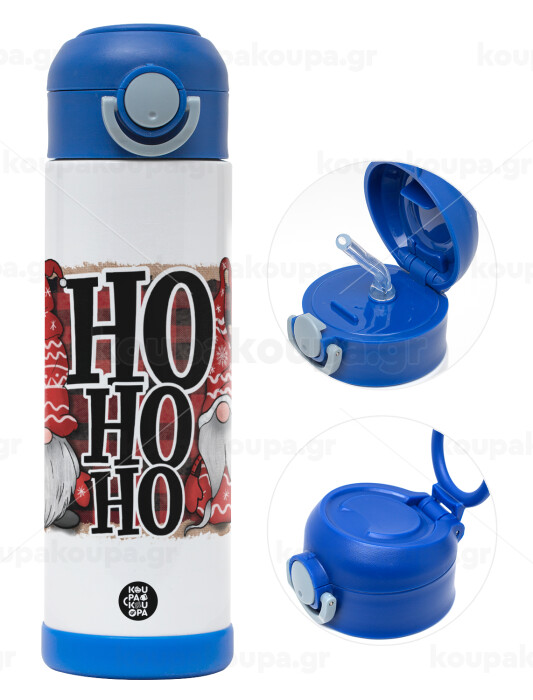Ho ho ho, Children's hot water bottle, stainless steel, with safety straw, BLUE (500ml)