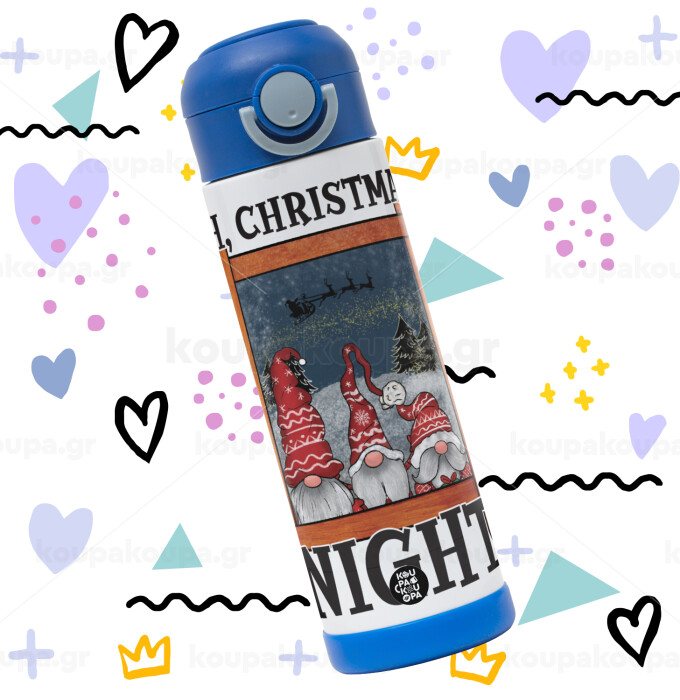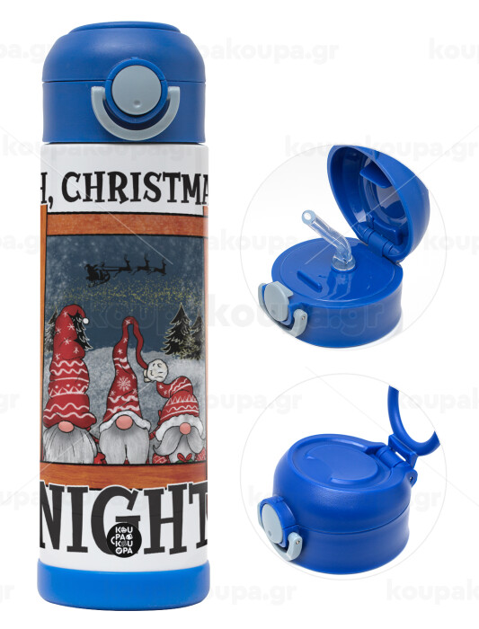 Oh Christmas Night, Children's hot water bottle, stainless steel, with safety straw, BLUE (500ml)
