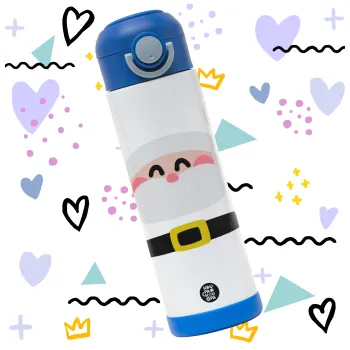 Simple Santa, Children's hot water bottle, stainless steel, with safety straw, BLUE (500ml)