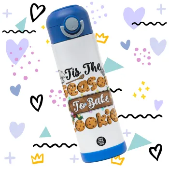 Tis The Season To Bake Cookies, Children's hot water bottle, stainless steel, with safety straw, BLUE (500ml)