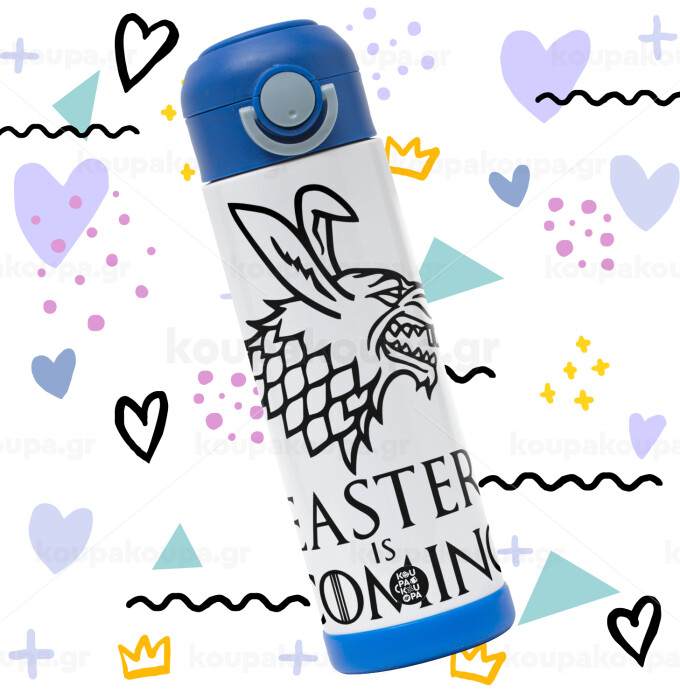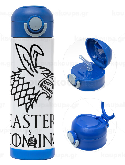 Easter is coming (GOT), Children's hot water bottle, stainless steel, with safety straw, BLUE (500ml)
