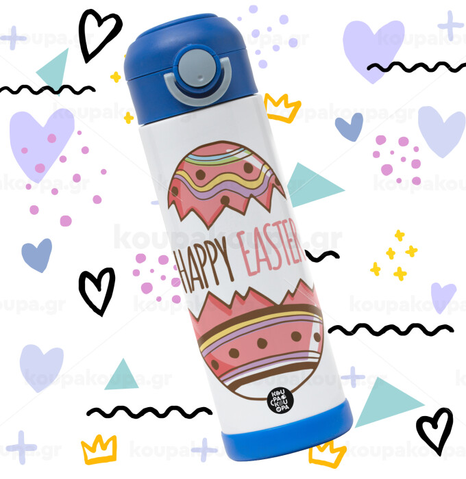 Happy easter egg, Children's hot water bottle, stainless steel, with safety straw, BLUE (500ml)