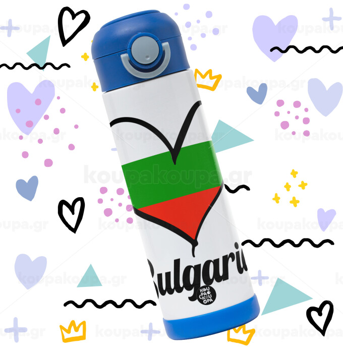Bulgaria flag, Children's hot water bottle, stainless steel, with safety straw, BLUE (500ml)