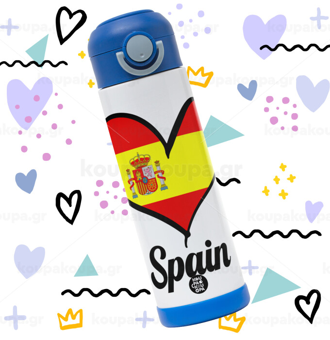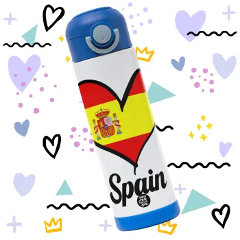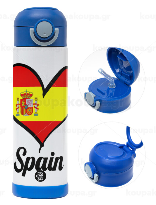Spain flag, Children's hot water bottle, stainless steel, with safety straw, BLUE (500ml)