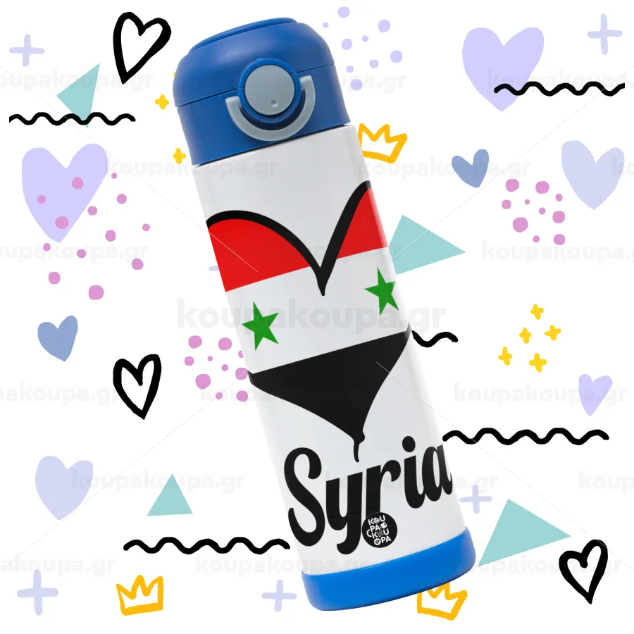 Syria flag, Children's hot water bottle, stainless steel, with safety straw, BLUE (500ml)