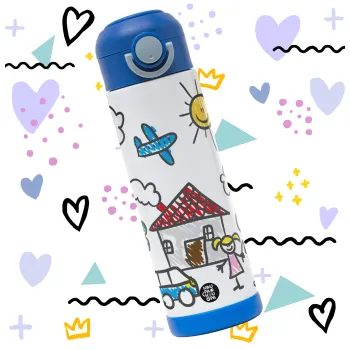Children's drawing, Children's hot water bottle, stainless steel, with safety straw, BLUE (500ml)