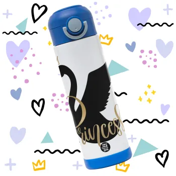 Swan Princess, Children's hot water bottle, stainless steel, with safety straw, BLUE (500ml)