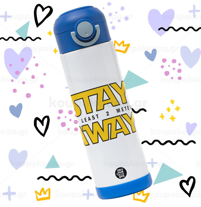 Stay Away, Children's hot water bottle, stainless steel, with safety straw, BLUE (500ml)