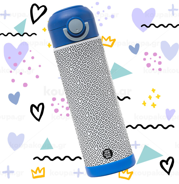 Doodle Maze, Children's hot water bottle, stainless steel, with safety straw, BLUE (500ml)