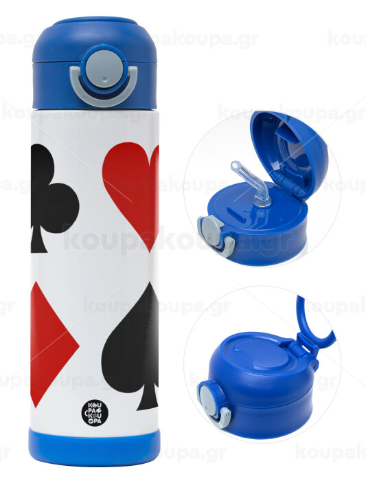 Τραπουλόχαρτα, Children's hot water bottle, stainless steel, with safety straw, BLUE (500ml)