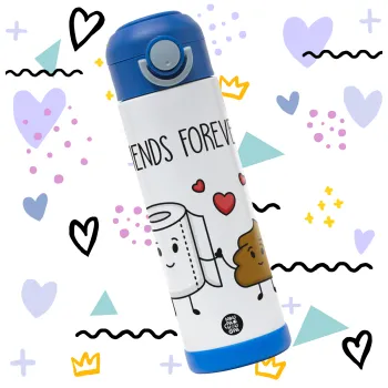 Friends forever, Children's hot water bottle, stainless steel, with safety straw, BLUE (500ml)