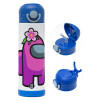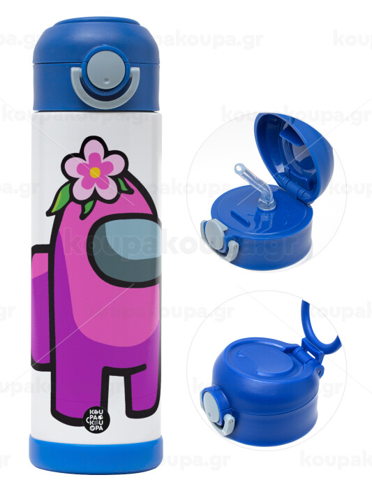 Among US girl, Children's hot water bottle, stainless steel, with safety straw, BLUE (500ml)