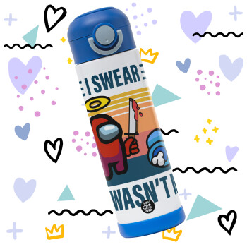 Among us, I swear it wasn't me, Children's hot water bottle, stainless steel, with safety straw, BLUE (500ml)