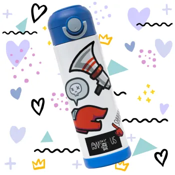 Among US Shhhh!!!, Children's hot water bottle, stainless steel, with safety straw, BLUE (500ml)